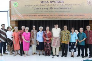 Pada hari Jumat, 29 Juni 2018 diselenggarakan Perayaan Ulang Tahun ke-75 Dr. Aloysius Rusli. Perayaan tersebut merupakan ungkapan syukur keluarga besar Dr. Aloysius Rusli dan keluarga besar FTIS UNPAR. Bertempat di Ruang Operation Room, Gegung Rektorat UNPAR, rangkaian perayaan dimulai dengan Misa Syukur yang dipimpin oleh Pst. Basilius Hendra Kimawan, OSC. Misa Syukur mengambil tema “Iman yang menyelamatkan”. Pst. Basilius Hendra Kimawan, OSC menyinggung bagaimana Pak Rusli, sapaan akrab untuk Dr. A. Rusli, memberi teladan bagi orang-orang di sekitarnya. Perayaan dilanjutkan dengan Sambutan oleh pihak keluarga, Yayasan dan Rektor UNPAR serta Dekan FTIS. Setelah itu dilanjutkan dengan serangkaian testimoni dari rekan kerja dan teman-teman P Rusli. Pak Rusli dikenal sebagai sosok yang kalem, dan sabar, dan selalu tersenyum. Mendengar testimoni-testimoni yang diberikan terlihat bagaimana P Rusli memberi kesan yang mendalam sebagai teman, sebagai ‘orangtua’ bagi banyak orang, sebagai pimpinan, ataupun sebagai rekan kerja. Begitu banyak keteladan yang diberikan Pak Rusli pada orang-orang disekitarnya.